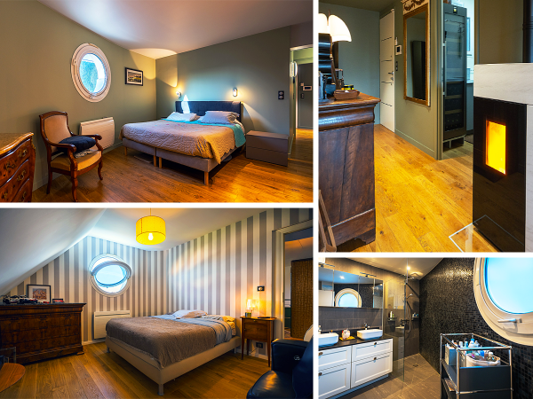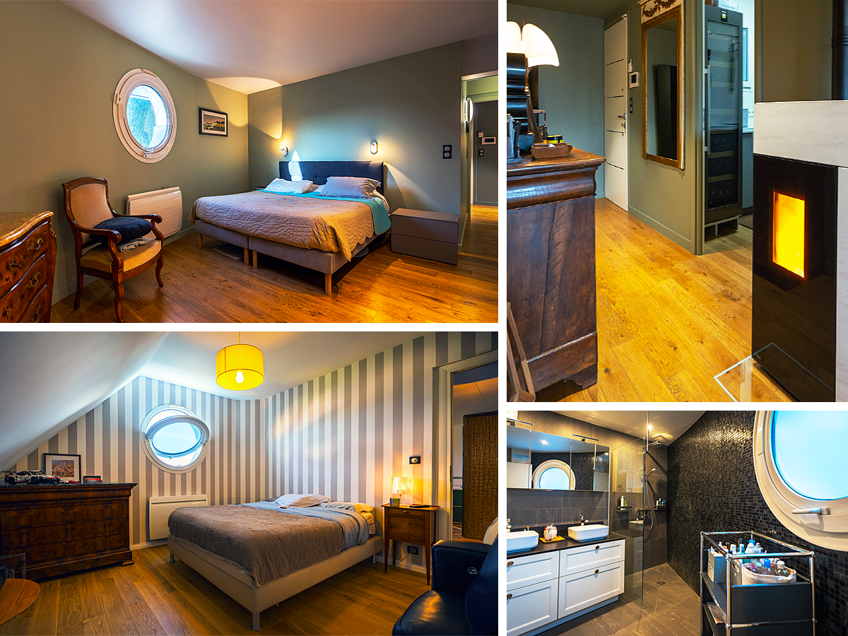 Côté confort, le chauffage est assuré par des radiateurs électriques aussi designs que performants. Combinés à la climatisation réversible sur le rez de chaussée, à un poêle à pellet et aux huisseries aluminium avec brises soleils orientables, tout cela assure des consommations faibles et un entretien inexistant.