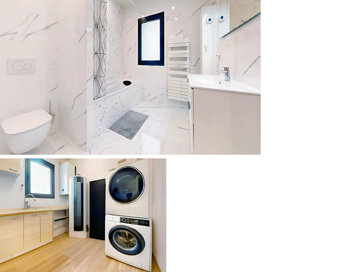 Enfin, salle de bain, salle d’eau et buanderie viennent compléter ces espaces, avec des prestations modernes, fonctionnelles et pensées pour répondre aux usages de toute la famille.