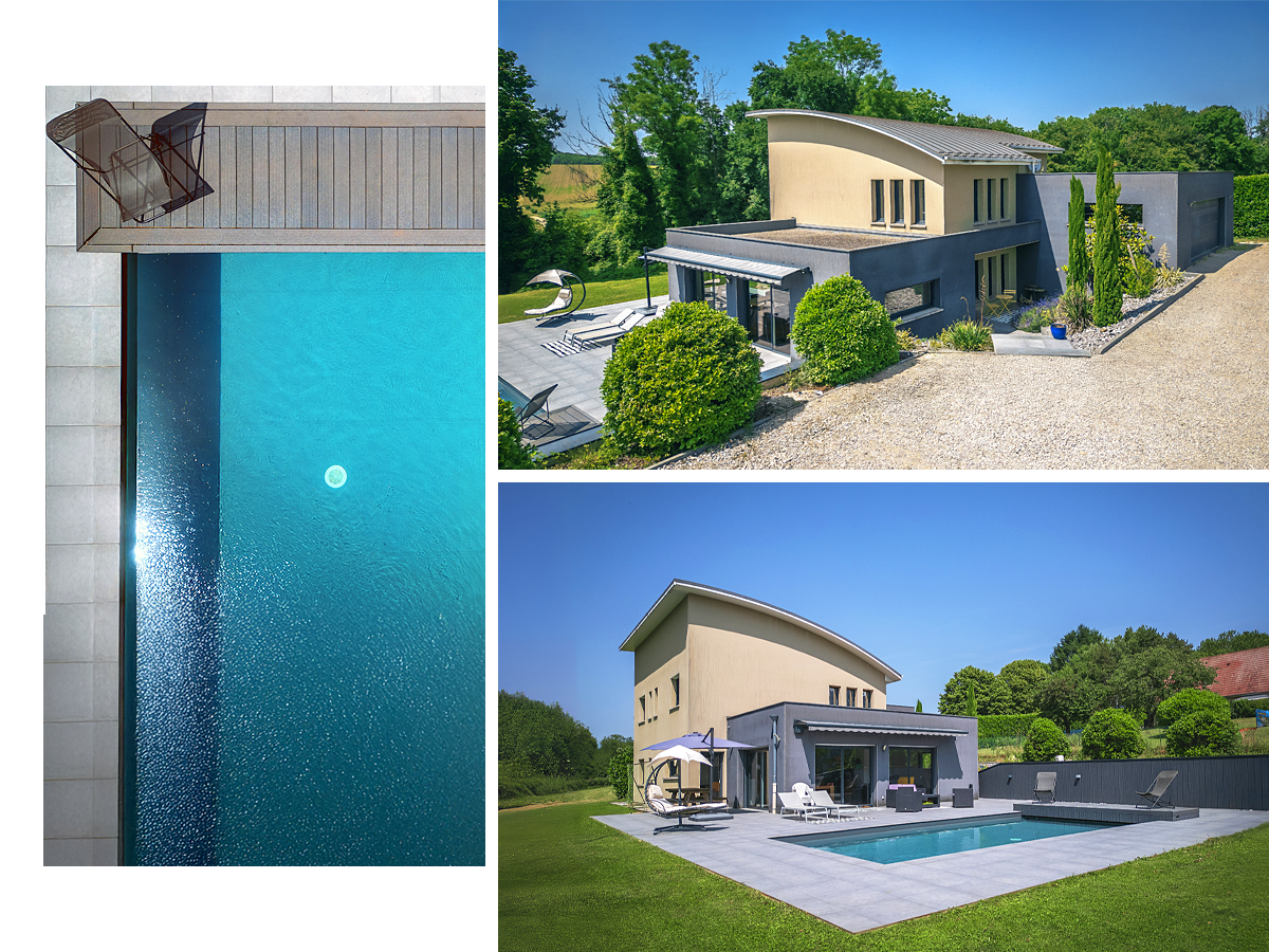 Aujourd’hui, nous vous invitons dans une petite commune du Doubs pour y découvrir une superbe maison d’architecte. Au creux d’une impasse, à seulement deux minutes de Saint-Vit, cette maison d’architecte s’impose en toute discrétion, comme une évidence pour ceux qui aspirent à la sérénité.